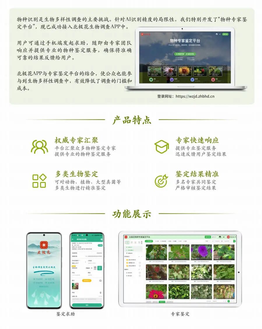 汇聚专家团队,提供专业的物种鉴定服务,用户可通过手机端发起求助,专家团队响应并提供鉴定结果。