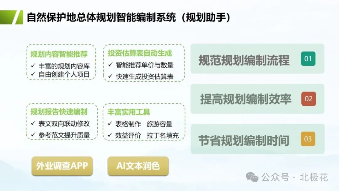 规划助手整合了丰富的规划项目库和范文,能够智能生成投资估算表,通过表文联动确保了表格和正文的一致性,还提供了拉丁名填充、旅游容量计算等实用工具,显著提高了规划编制效率。