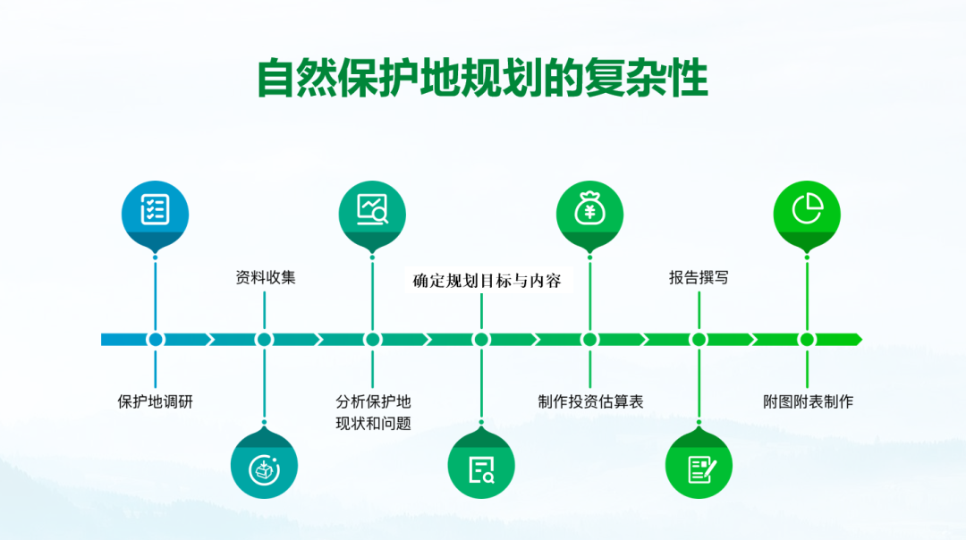 自然保护地的规划编制是一个复杂而繁琐的过程,涉及土地资源的保护、开发、利用等多个方面。随着自然保护区体系的不断优化,规划编制的需求也日益增加。然而,传统的规划编制方式效率低下,数据采集和报告撰写常常耗时费力。