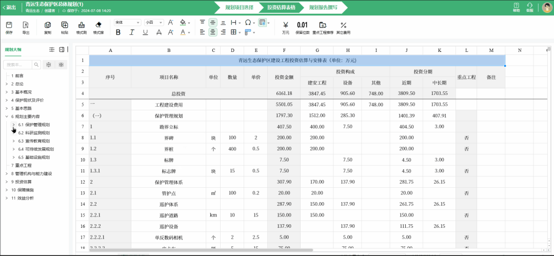 2、自动生成投资估算表:系统自动推荐单价与数量,并快速生成投资估算表,大幅度减少了人工计算的繁琐。