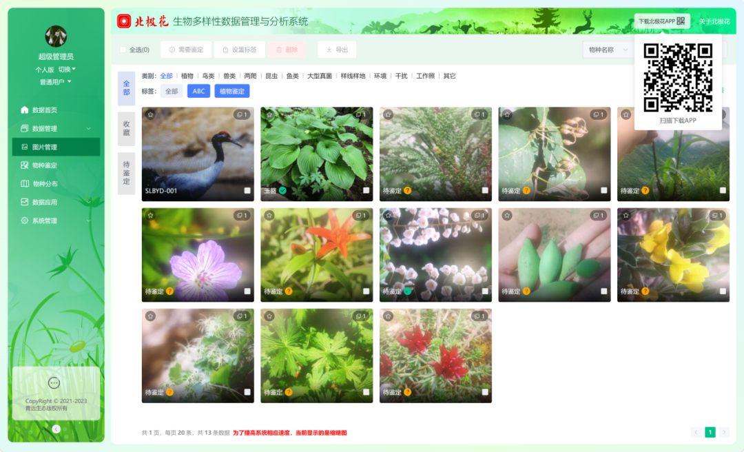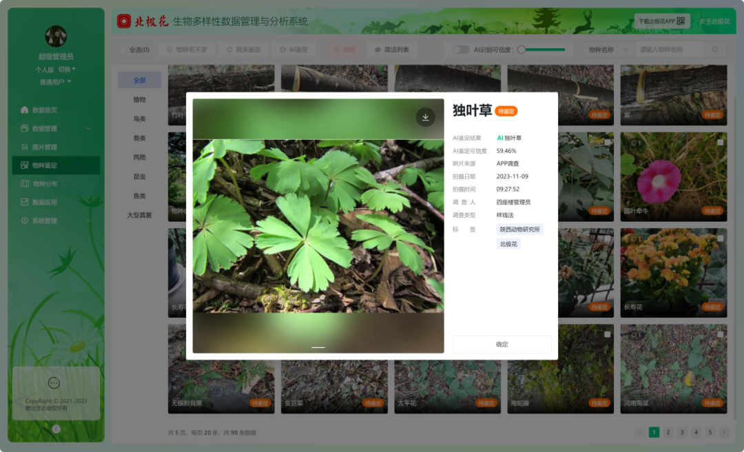 此外,通过数据管理、图片管理与物种鉴定三个环节的联动,可高效对物种进行鉴定,确保种名正确。
