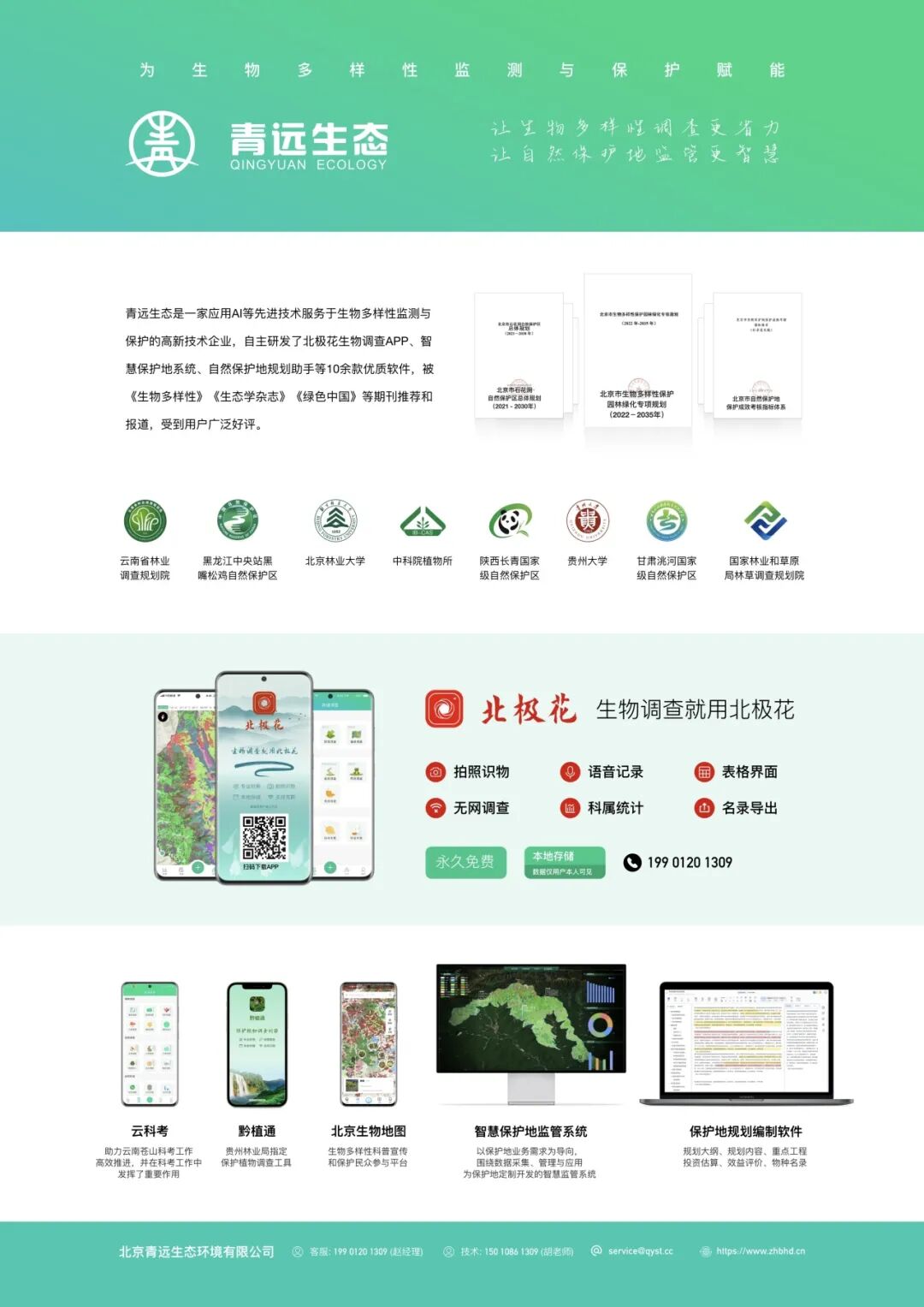 目前,公司自主研发了“北极花生物调查APP、自然保护地智慧监管系统、自然保护地规划编制智能系统、野生动物收容救护平台等十余款受用户好评的软件,并荣获北京市第十八批新产品认定。青远生态是更懂生态专业的软件开发者,立志成为生态软件行业的领导者。