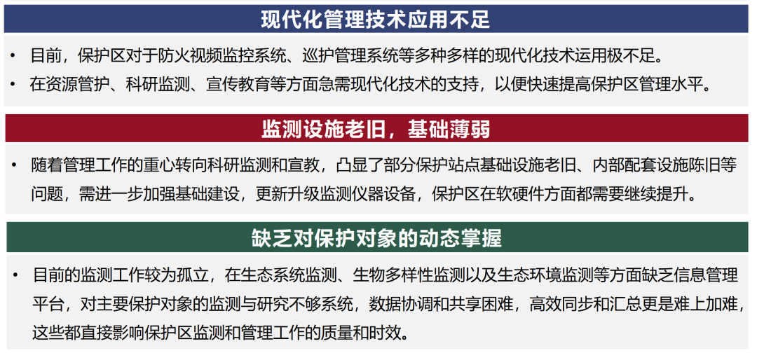 长期以来,由于四座楼自然保护区内的工作存在交叉,生态监测数据碎片化,现代科技手段未充分应用等问题十分突出,无法说清生态环境现状,也无法科学判断生态变化趋势。
