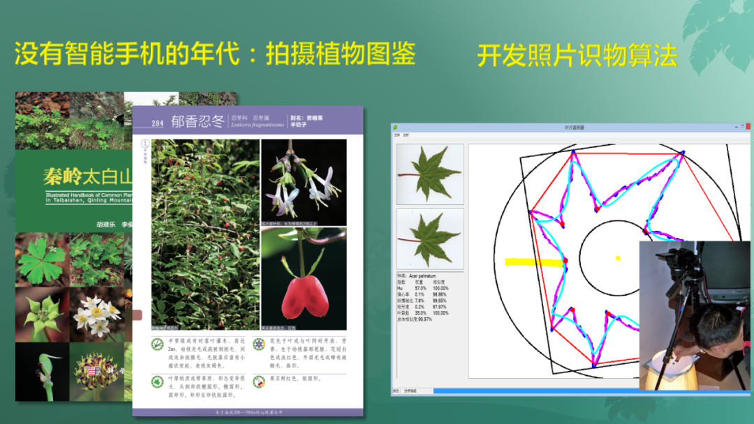 在智能手机还没有普及的时代,我当时想到我是不是可以编一些图鉴,让我们的普通公众也能看图识物,也能参与调查,这对公众参与是有一定帮助,但对效率的提升还远远不够。后来我又想到能不能让公众在户外只是拍照,把这个照片发给我们,我们再用电脑批量的进行分析和记录,这个方法确实又进一步提高了效率,但是便携性,还有及时性也存在很大的问题。