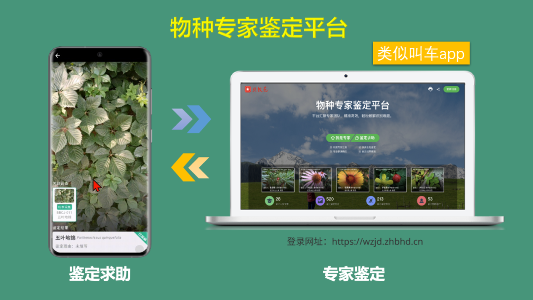 当然公众也希望能及时的得到反馈,所以我们又专门的打造了一个类似于这种叫车APP的平台,我们把它叫做物种专家鉴定平台。比如你所要鉴定的植物,我们会推相关的类型的专家,就近的专家给你来鉴定,答复你的问题。当然我们也会考虑很多因素,确保鉴定的准确性。那么有了这个APP,有了这个平台,这个调查就能确保高效,准确。