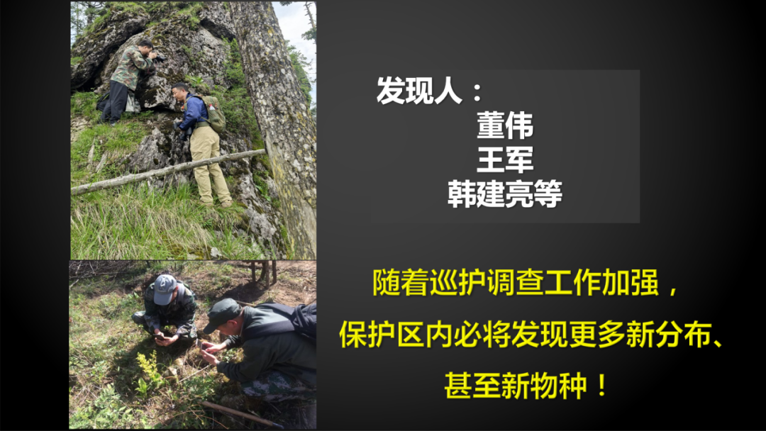 我也请大家记住我们的英雄董伟、王军,韩建亮,是这些平凡而普通的巡护员,用他们自己的力量帮我们找到了这些新种。