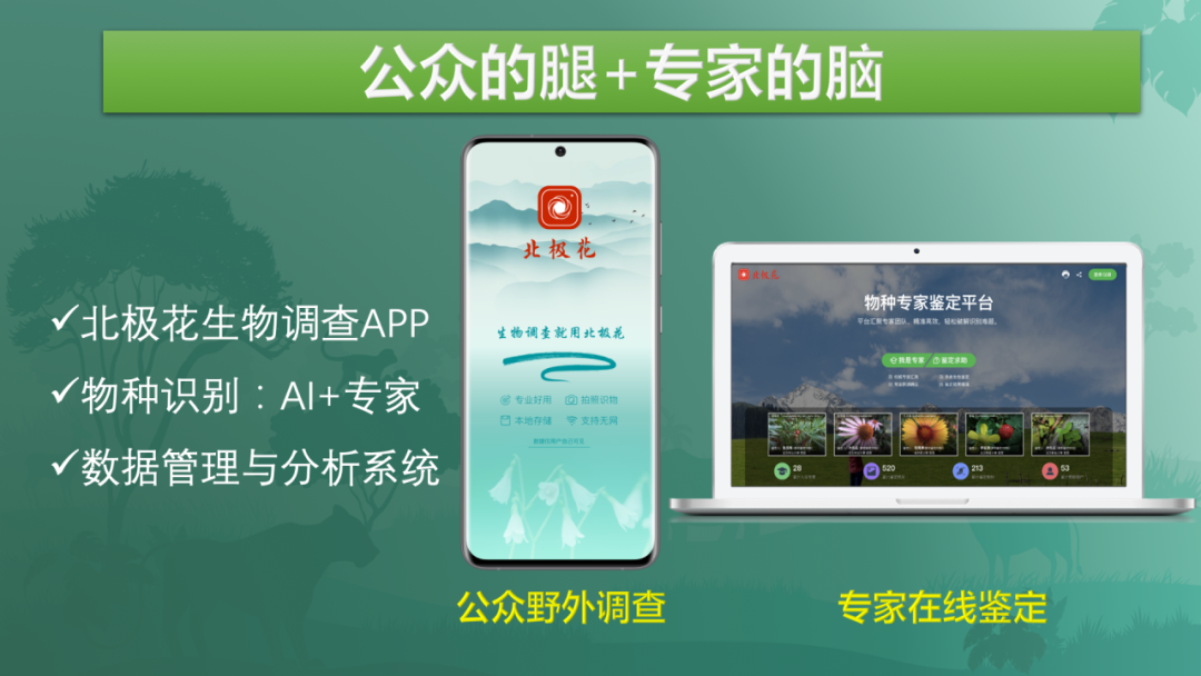 这个模式到底行不行,可能还得要去检验一下。在2023年的时候刚好就迎来这么一个机会,百花山想把他们的重点保护植物做一次大型的摸底调研,这需要很多的人,也需要很多的钱,但是保护区没有那么多钱,他们时间也很紧,就想一年完成。当时就找到我,我就跟他介绍了公众的腿加专家的脑模式,我就跟他说,我们可以把实习的学生,甚至来旅游的这些驴友,把他们全都发动起来,让他们用这个软件去拍,去记录,只是要我们走的路线够多,调查的区域够广,那么这些照片,让AI,让专家来鉴定,我们就有可能在短时间内完成这项任务。