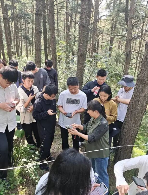在林场固定监测样地调查实操环节,参训人员认真学习并亲身体验北极花 APP,完成从数据采集到上传云端的无纸化调查全流程覆盖: