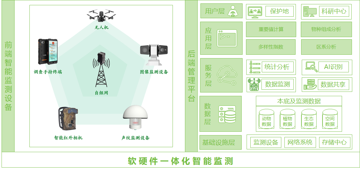 通过构建“天空地一体化”监测体系,整合红外相机、巡护终端、无人机、环境传感器等多源设备,实现数据高效采集与实时回传;通过“AI自动识别+专家在线鉴定”双机制保障物种识别的准确性与效率,形成规范化的生态本底数据库;深度融合科研、巡护、防灾、宣教等业务模块,实现数据驱动下的智能决策与精细管理,推动保护区从传统经验管理向数字化、智慧化转型。