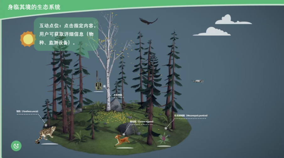点击地图上的互动点位,即可实时获取该区域的详细物种信息与生态故事。