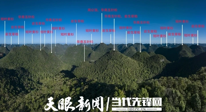 此外,调查队在黔南荔波上千座岩溶峰丛山顶,发现了以华南五针松、岩生翠柏和短叶黄杉等国家重点保护野生植物为主要建群种的“孤岛化”岩生针叶林,从山顶至山脚形成了高差仅200余米的小尺度自然植被垂直带,十分独特和罕见,对我国西南岩溶植被与珍稀濒危物种的环境响应机制等研究具有十分重要的价值和意义,引起学术界的关注。