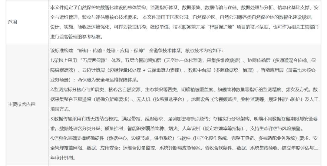 二、《自然保护地数智化建设技术规范》的主要内容
